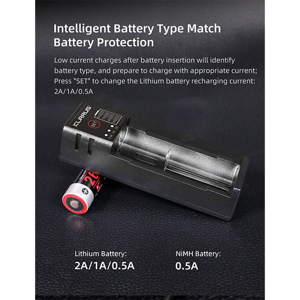 Zu den zahlreichen Vorteilen gehört auch die LED Anzeige, durch die Sie sich jederzeit über den Status der Ladung in Kenntnis setzen können. Zusätzlich verfügt der KLARUS Auflader für Ihre Taschenlampe über eine integrierte Verpolung und maximalen Kurzschlussschutz. Sie können Akkuschäden vermeiden, da die Ladung automatisch stoppt, wenn der Akku ausreichend mit Energie versorgt und vollständig geladen ist.
