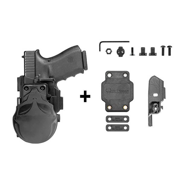 Kampf oder Flucht ist in der menschlichen DNA fest verankert. Es ist die ursprünglichste Überlebenskomponente schlechthin. Wenn diese Nebennieren-Reaktion durch Ihre Adern in Beschlag nimmt, können Sie sich 100%ig auf das ShapeShift OWB Paddle Holster verlassen. Das ShapeShift OWB PADDLE HOLSTER von ALIEN GEAR HOLSTERS wird in den USA speziell für verdecktes Tragen hergestellt und es kann je nach Bedarf und Situation eingestellt und umkonfiguriert werden. Das Paddle kann ohne Werkzeug deinstalliert und für jede der verfügbaren ShapeShift-Holsteroptionen umkonfiguriert werden.