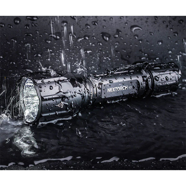 Das T7 Set V2.0 von NEXTORCH wurde speziell für den Jagdbereich entwickelt. Der Lichtstrahl ist sehr stark gebündelt, sodass eine Leuchtweite von 420 Metern erreicht wird. In Notfallsituationen blinkt die T7 ein S.O.S-Notrufsignal vollkommen automatisch, was in schwer erreichbare Gegenden ohne Mobilfunkempfang ein echtes Sicherheitsplus ist.