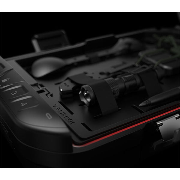 Durch die Integration von VAULTEK’s präzisionsgefertigter Tresortechnologie und der stossfesten Verriegelung verfügt der LIFEPOD 2.0 über ein eingebautes Schloss, mit dem du den Safe bei Bedarf schnell abschliessen kannst. Dank des einzigartigen, hintergrundbeleuchteten LED-Keypad, kannst Du den Master-Code auch bei schlechten Sichtverhältnissen zum Entriegeln eingeben und eine völlig neue LED-Innenbeleuchtung illuminiert den Inhalt.