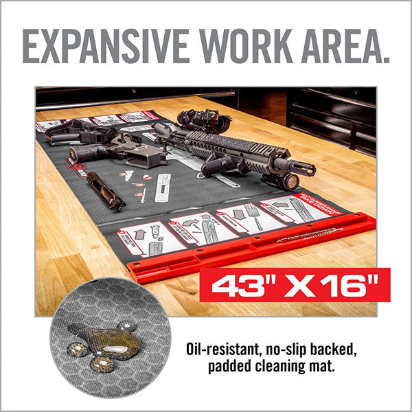 Die SMART MAT – AR15 Reinigungsmatte von REAL AVID ist eine Reinigungsmatte der nächsten Generation mit ölbeständigen und stossdämpfenden Eigenschaften. Ein magnetisches Fach sichert Mikrobauteile. Die SMART MAT wird mit Anleitungen zum Zerlegen, Feldstrippen und Demontieren der Verschlussträgergruppe geliefert. Die Reinigungsmatte wurde speziell für AR-Besitzer konzipiert und bringt diese 109 cm x 40 cm grosse Matte auf das nächste Level.
