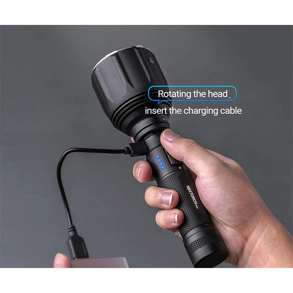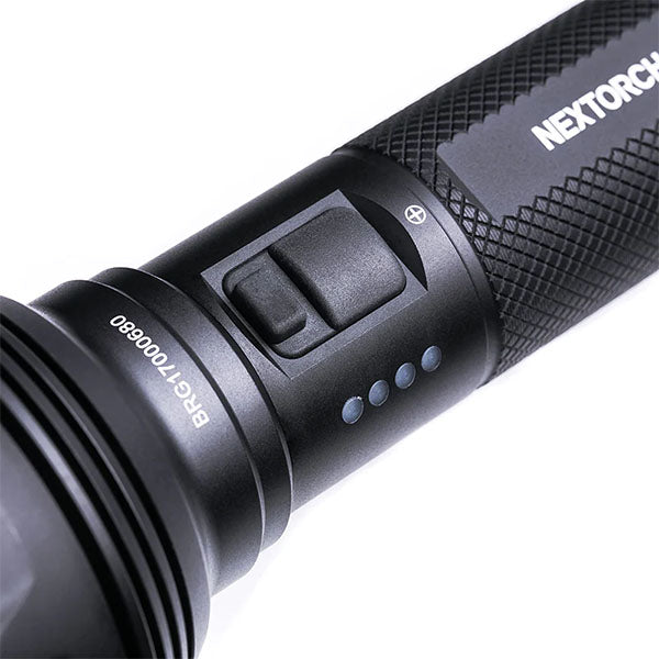 Die taktische Einsatzlampe P82 von NEXTORCH liefert eindrückliche 1’200 Lumen mit einer maximalen Leuchtweite von über einem Kilometer. Die einhändige Bedienung ist einfach und selbsterklärend. Alle Leuchtmodi werden ganz einfach über einen Schalter gesteuert: einschalten, dimmen, ausschalten.