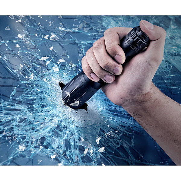 Vorne an der Linse befindet sich für Notsituationen ein Glasbrecher, der aus praktisch unverwüstlichem Nano-Keramik gefertigt ist. Der Strobo-Modus dient der Abwehr in heiklen Situationen und zeigt auch Wirkung bei Personen, die unter der Einwirkung von Alkohol oder Betäubungsmitteln stehen.