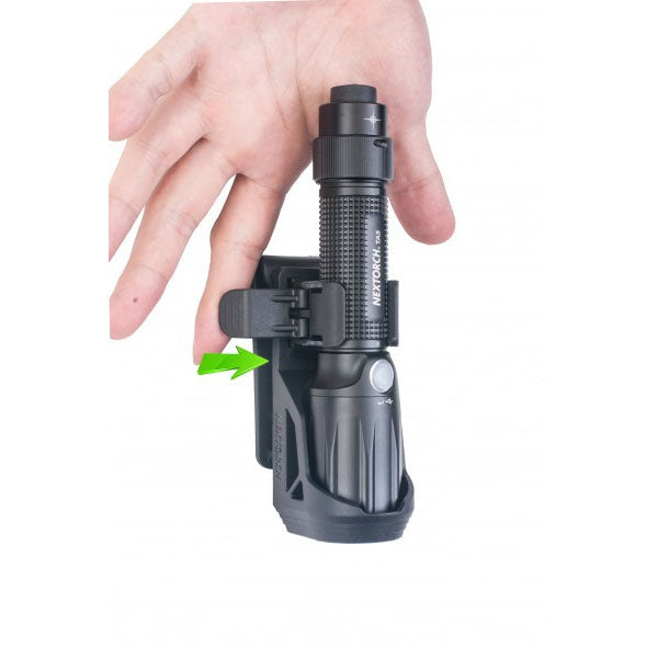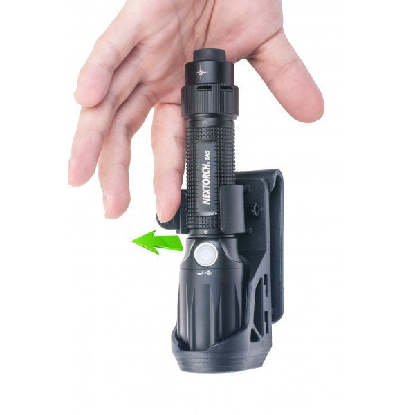 Das V5 Holster von NEXTORCH ist das Resultat langjähriger Entwicklungsarbeit in Zusammenarbeit mit Sicherheitskräften. Das Holster wurde in zahlreichen Einsätzen erprobt und beeindruckt durch eine besonders hochwertige Verarbeitung. Das V5 Holster wurde aus einem Materialmix aus Nylon, Glasfaser und TPR hergestellt. Es ist schlagfest, nahezu unverwüstlich und mit der Möglichkeit die Taschenlampe im Holster 360° zu drehen.