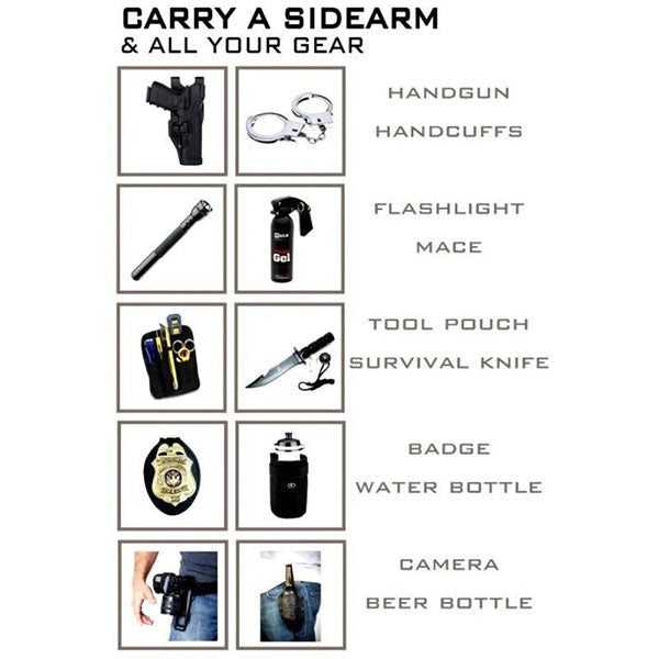 Es ist der sicherste und bequemste Waffengürtel, den du je tragen wirst. Es benötigt nicht tausend Löcher, die sowieso immer am falschen Ort sind. Du kannst den Gürtel jederzeit, ohne ihn auszuziehen, mit einem einzigen Handgriff in 6mm-Schritten verstellen. Morgens ein bisschen enger, beim langen Sitzen im Büro oder nach dem Essen vielleicht ein bisschen lösen...:0)