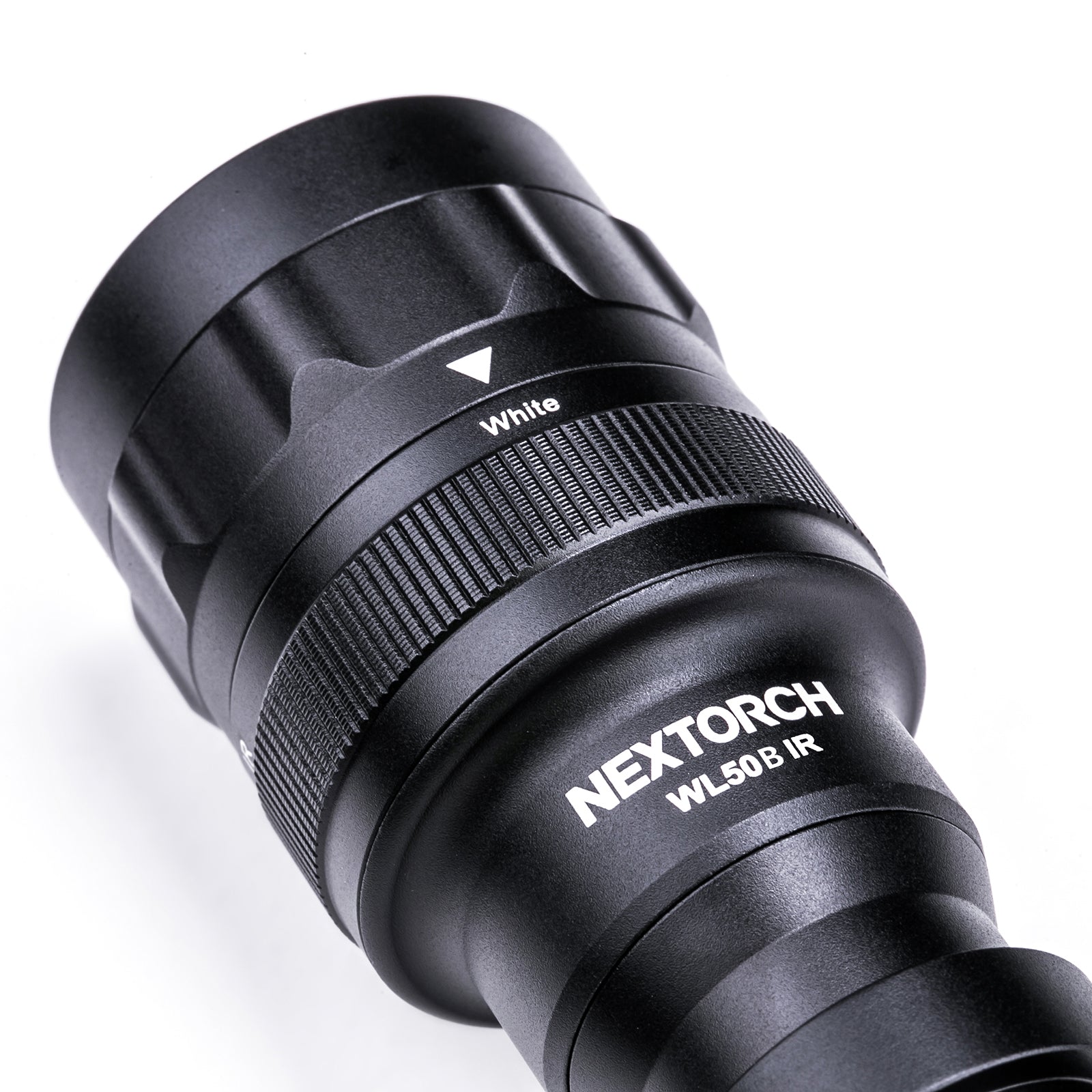 Die WL50B IR von Nextorch ist eine leistungsstarke Waffenlampe mit kombiniertem Weisslicht- und Infrarotmodus für professionelle Anwender. Mit bis zu 1000 Lumen Weisslicht und einem 940 nm IR-Licht für den verdeckten Einsatz ist sie ideal für Polizei, Security, Jäger und Sportschützen. Die Lampe wird direkt an der Picatinny-Schiene montiert, verfügt über einen drehbaren Moduswahlschalter und kann wahlweise über den Heckschalter oder die mitgelieferte Kabelfernbedienung gesteuert werden.